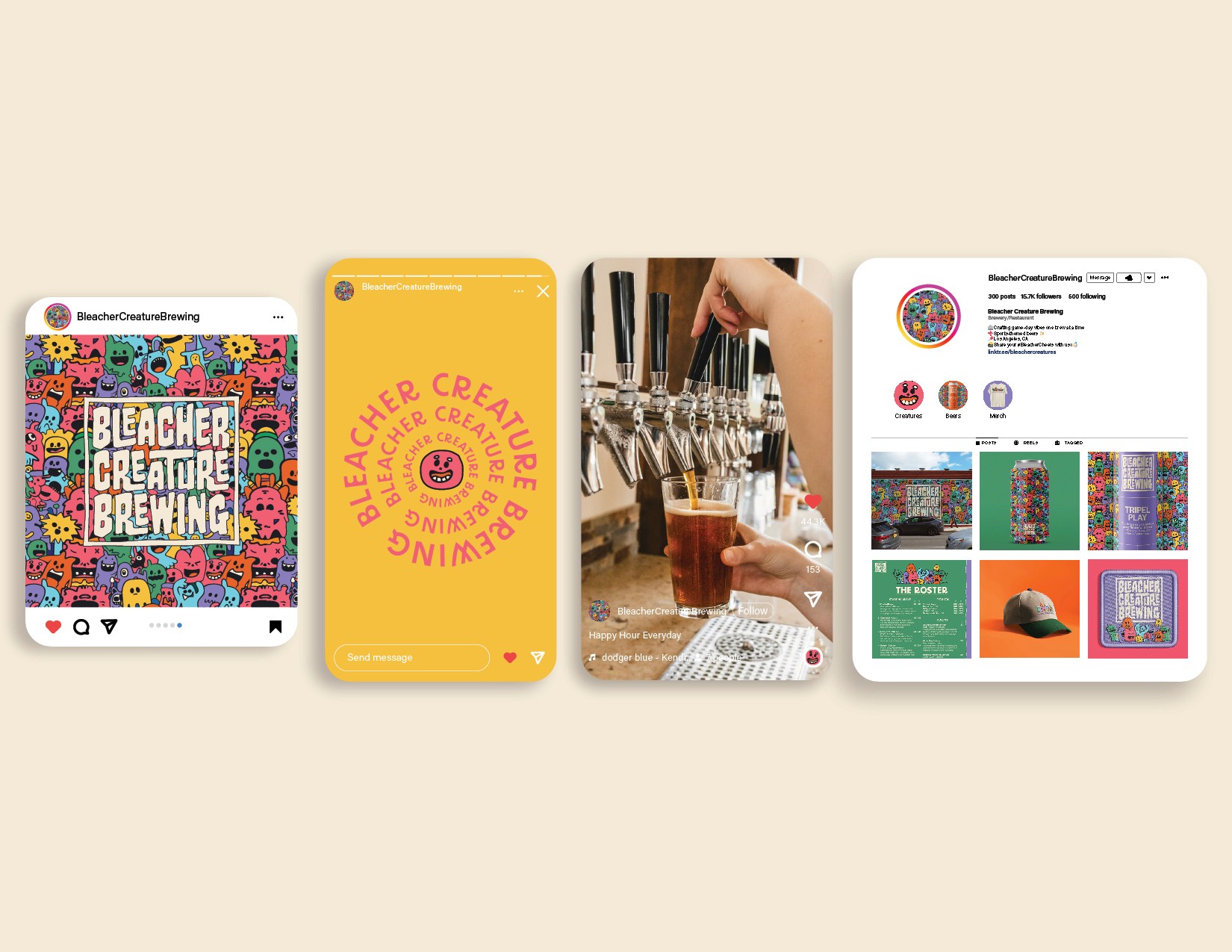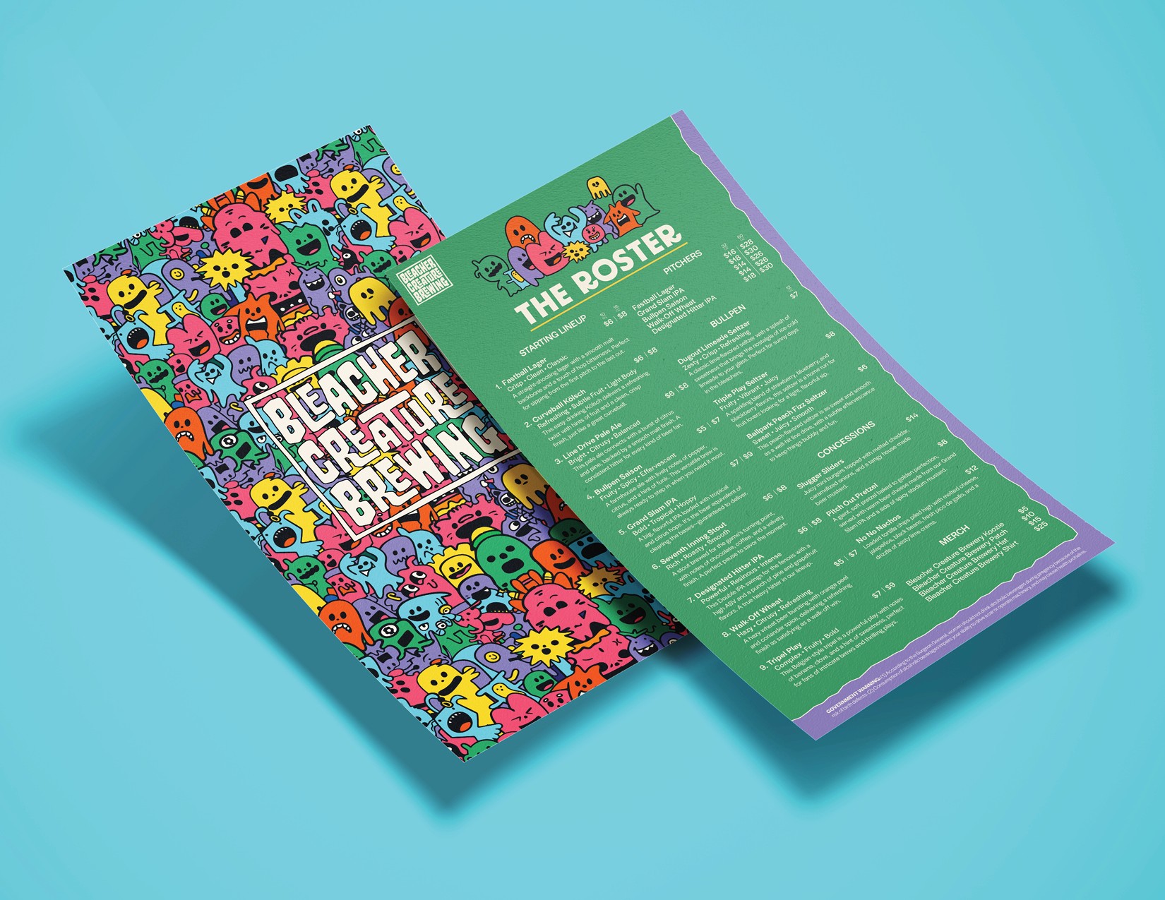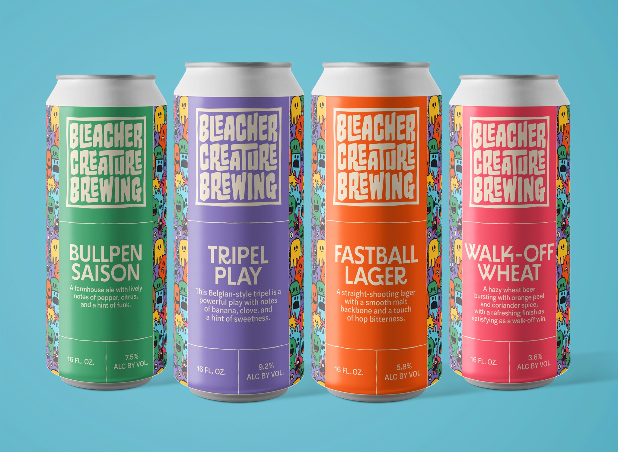 The idea was to blend the excitement of sports culture with the creativity of craft brewing by developing fun and familiar creatures as central brand mascots. These playful characters embody the energy, passion, and camaraderie of die-hard sports fans—the heart and soul of the bleachers.