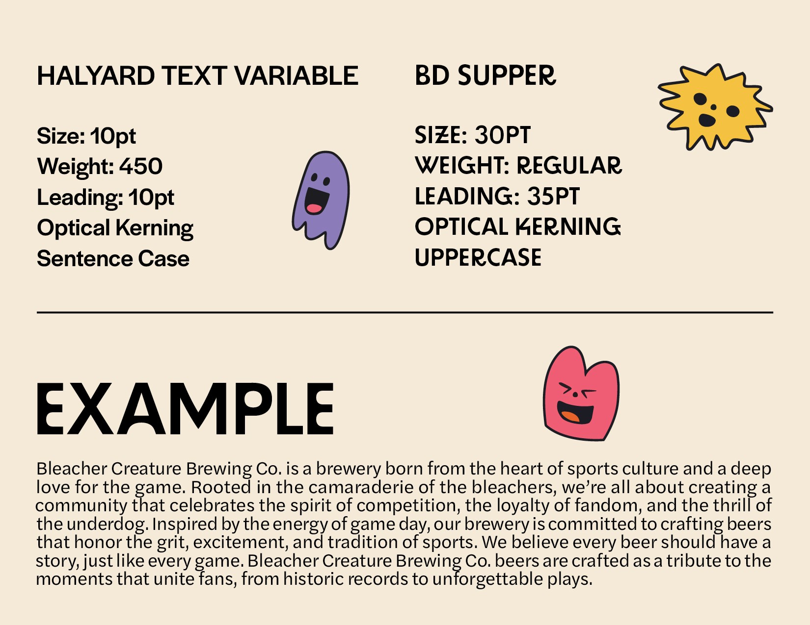 The primary objective of this project is to create a strong and cohesive brand identity for Bleacher Creature Brewing Co. that resonates deeply with both sports fans and craft beer aficionados. An identity that authentically captures the excitement, nostalgia, and communal spirit of being a sports fan, while also reflecting the artistry, craftsmanship, and innovation that are at the core of the craft beer industry.