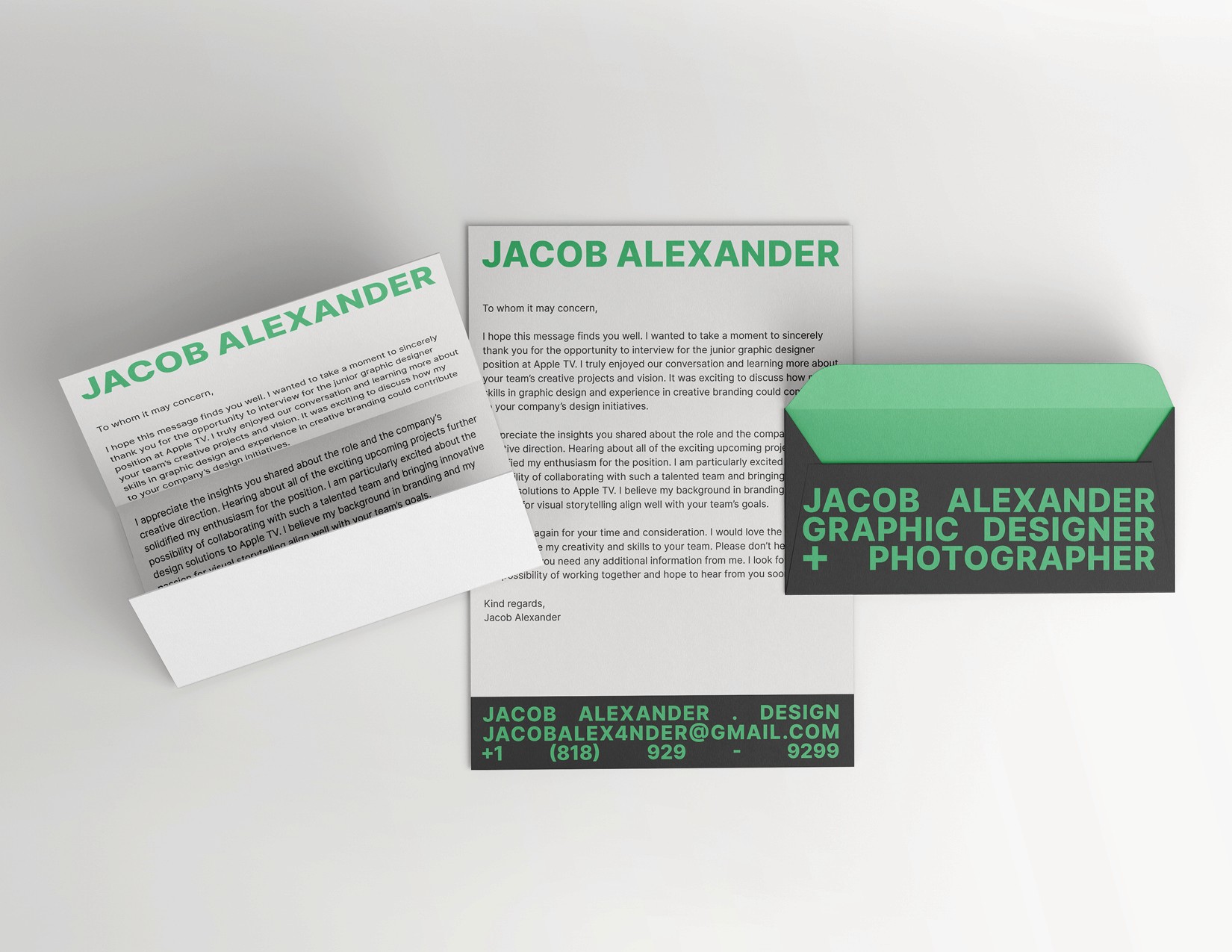 I wanted to create a seamless and complete visual brand that effectively communicated who I am as a person and designer, but also how those stylings translate into my overall designs. After many iterations of this identity, I arrived at a style that takes its inspiration directly from a more base characteristic of mine outside of design. I've always written in all capitals and I always opt for "+" as opposed to an ampersand.
